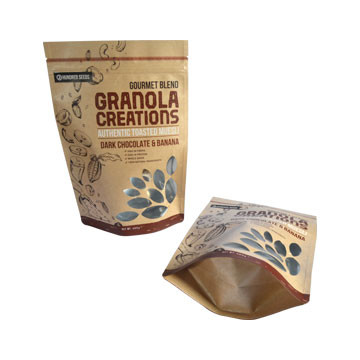 Stand up Food grade kraft paper pe zipper pouch packing bag for nuts Images |