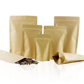 Resealable Snack Stand up Zipper Pouch Plastic Aluminum Foil Lined Kraft Packaging Food Paper Bags with Window Images |